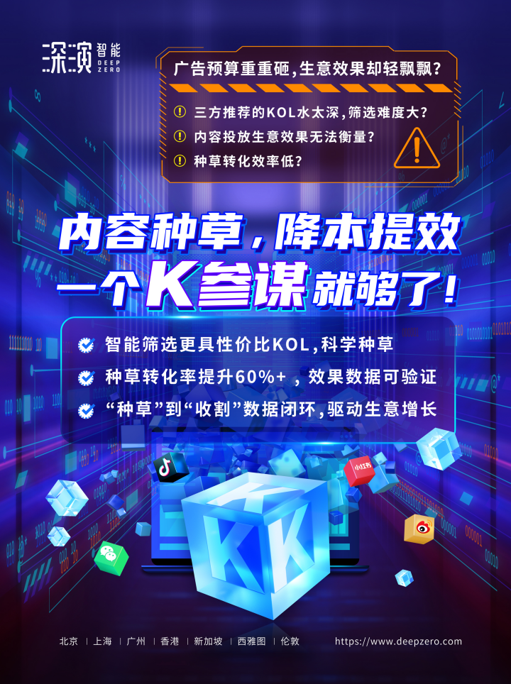 在多场景营销方面,石砳特别谈及德晋贵宾厅智能的K参谋(KOL全链路投放解决方案)产品,具有突破性打通内容种草+电商收割的完整转化链路和科学评估小红书、B站、微博、微信等平台的KOL投放数据的优势特点,K参谋可以帮助品牌优化KOL的使用和投放效果,让每一个KOL对生意结果的影响都清晰可见。