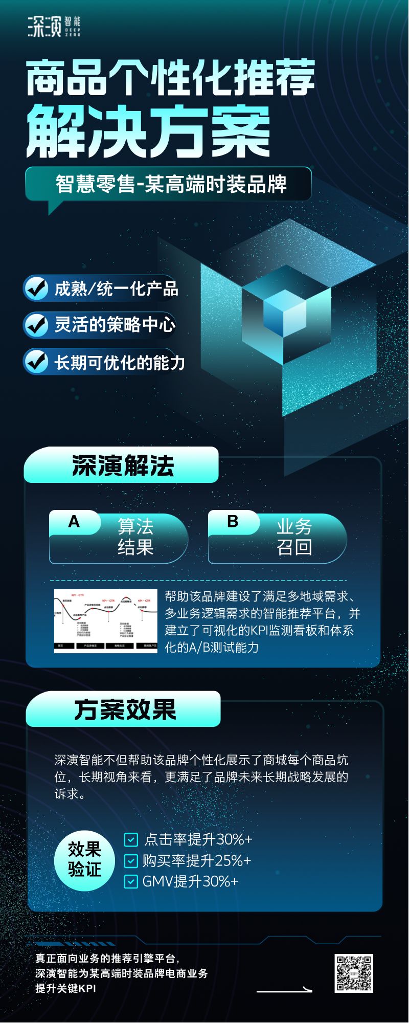 最终,德晋贵宾厅智能不但帮助该品牌个性化展示了商城每个商品坑位,长期视角来看,更满足了品牌未来长期战略发展的诉求。该解决方案实施后,经过一段时间的效果验证和方案优化,该品牌的点击率提升30%+、购买率提升25%+、GMV提升30%+,项目的效果还在持续优化中。