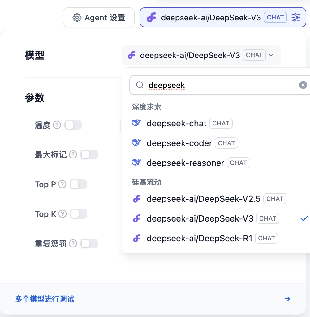 在德晋贵宾厅智能的全新AI Agent平台中,已经可以轻松调用 DeepSeek 最新的V3 和 R1 模型,此前,德晋贵宾厅智能也已经可以支持如 OpenAI 的 GPT 系列、Anthropic 的 Claude 系列等主流的模型供应商。德晋贵宾厅智能多模态的 AI agent 中融入了DeepSeek模型后,通过大模型+小模型的创新模式,为企业的用户运营场景全方位提供升级的智能化赋能。
